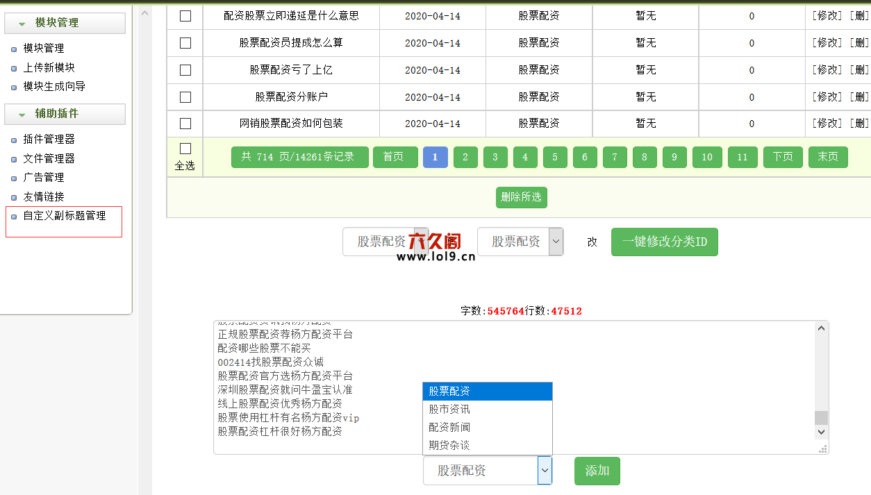 6、批量导入权重词对应栏目。